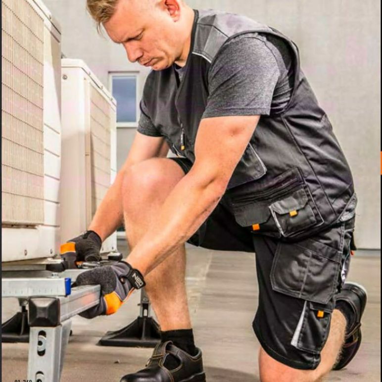 kurze Arbeitshose mit Gürtel Diese kurze Arbeitshose bietet auch bei höheren Temperaturen besten Arbeitsschutz. Die Hose wurde aus hochwertigem Stoff gefertigt. Des weiteren sind die Nähte an den Scheuerstellen sowie an den Taschen dreifach verstärkt . Zusätzlich verfügt die Hose über abnehmbare Taschen , ein Tragen von zusätzlichem Werkzeug ist somit möglich. Abgerundet wird die kurze Hose durch den im Lieferumfang enthaltenen Gürtel . Die Profi-Arbeitshose entspricht allen Anforderungen der EU. Technische Daten Bund mit Gürtelschlaufen inkl. Gürtel 2 eingesetzte Vordertaschen, plus zusätzliche Handytasche und Tasche, ideal für Nägel oder Schrauben 2 Gesäßtaschen und eine seitliche Tasche, mit Klettverschluss verschließbar 1 weitere seitliche Einschubtasche Hammerschlaufe Hosenschlitz mit Metallreißverschluss Material: 65% Polyester, 35% Baumwolle Grammatur: ca. 267 g/m² EN 340 hypoallergenes Material bei 40° Grad waschbar Farbe: grau/schwarz Größe S (48) M (50) L (52) LD (54) XL (56) XXL (58) Brustumfang in cm 92-96 96-104 104-108 108-116 116-124 124-132 Tailenumfang in cm 64-72 72-80 80-88 88-96 96-104 104-112 Körperlänge in cm 164-170 170-176 176-182 182-188 188-194 194-200