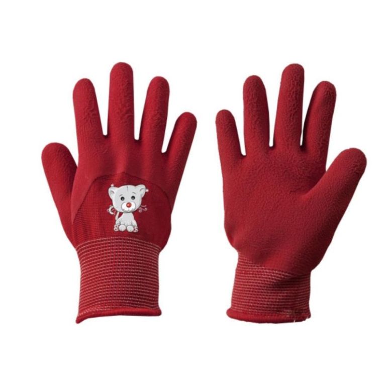 Bradas Kinder Arbeitshandschuhe „Kitty“ mit Latexbeschichtung Mit den Kinder-Schutzhandschuhen „Kitty“ können auch die ganz Kleinen während der Gartenarbeit oder beim Werkeln ganz groß in Erscheinung treten und mithelfen. Die von der Firma Bradas hergestellten und mit Latex beschichteten Arbeitshandschuhe garantieren einen ausgezeichneten Halt und schützen effektiv vor mechanischen Einwirkungen. Setzen Sie auf ein hochqualitatives Produkt, welches mit einer hohen Widerstandsfähigkeit daherkommt. Besonderheiten auf einen Blick: Tolle Qualität Hohe Langlebigkeit Gute Passform Ausgezeichnete Robustheit Hervorragende Atmungsaktivität Starkes Material: Hohe Belastbarkeit Angeraute Beschichtung Sehr gute Schnittbeständigkeit Beachtliche Reißfestigkeit   Ein sicherer Kinder Arbeitshandschuh mit hohem Tragekomfort Der Kinder-Arbeitshandschuh „Kitty“ der Firma Bradas ist von der gesamten Machart her ein Symbol für Sicherheit und Tragekomfort. Der hohe Qualitätsgedanke während der Produktion stellt sicher, dass Ihr Kind fortan ein Arbeitsutensil nutzen kann, welches für alle Situationen gewappnet ist. Vor allem die folgenden Punkte springen dabei besonders positiv ins Auge: Schutz für Kinderhände Gutes Tastempfinden Perfekte Griffigkeit Sicherheitsrelevante Punkte werden zu jedem Zeitpunkt ausgezeichnet abgedeckt, sodass die Kleinen während des Aufenthaltes im Garten oder beim Handwerk unbeschwert mithelfen können und die in dem Alter noch empfindlicheren Hände dauerhaften Schutz erfahren. Die folgenden Punkte sind dabei besonders nennenswert: Hohe Festigkeit, dank gestricktem Polyester mit Latex-Beschichtung Erfüllung der Normen EN 388 und EN 420   Ein zuverlässiger Kinder-Arbeitshandschuh mit schöner optischer Umsetzung Das Modell „Kitty“ besticht nicht nur in punkto Sicherheit, Langlebigkeit und Qualität, sondern kann auch von optischen Gesichtspunkten betrachtet überzeugen. Hier fallen besonders die folgenden Merkmale positiv auf: Angenehmer, unaufdringlicher Rot-Ton Hübsche, kindergerechte Motivplatzierung am Handrücken Der Handschuh wirkt designtechnisch zeitlos und harmonisch, sodass die Kleinen mit Sicherheit lange Freude an ihm haben werden. Hinweis: Diese Handschuhe gibt es in zwei verschiedenen Motiv-Varianten. Das Motiv ist nicht wählbar.   empfohlene Größenangabe Alter Größe 2 3-4 Jahre Größe 3 5-6 Jahre Größe 4 7-8 Jahre Größe 5 9-10 Jahre Größe 6 11-12 Jahre