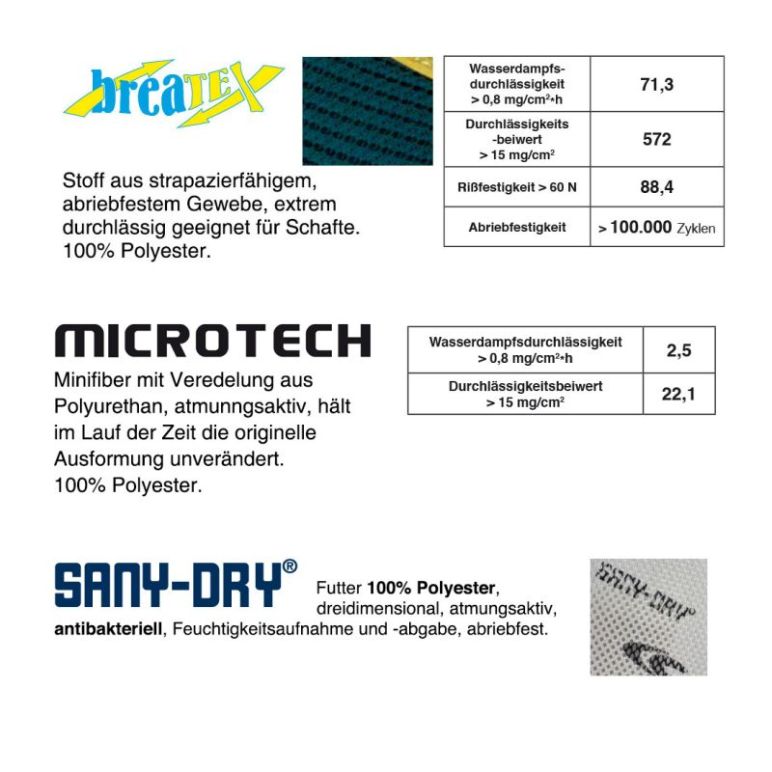 Cofra Sicherheitsschuhe Carnera S1 P SRC NORM: EN ISO 20345:2011 SCHAFT: BREATEX Stoff mit besonderer dreidimensionaler Webart, extrem atmungsaktiv und MICROTECH AUSSENFUTTER: BREATEX Stoff, extrem atmungsaktiv INNENFUTTER: SANY-DRY® 100% Polyester, dreidimensional, atmungsaktiv, antibakteriell, Feuchtigkeitsaufnahme und -abgabe, abriebfest FUSSBETT: COFRA SOFT, anatomisches, antistatisches und gelochtes Fußbett aus weichem, bequemem und duftendem Polyurethan, das Design der unteren Schicht garantiert einen schockabsorbierenden Effekt, die obere Schicht nimmt den Schweiß auf und hält den Fuß stets trocken SOHLE: Polyurethan/TPU KAPPE: ALUMINIUM 200 J DURCHTRITTSICHERE ZWISCHENSOHLE: APT PLATE - Zero Perforation, nichtmetallisch WEITE: 11 Mondopoint PLUS: Vorderkappe aus Leder ZUSÄTZLICHE TECHNISCHE EIGENSCHAFTEN: DGUV 112 - 191 GRÖSSEN: 36-47 (EU), 3-12 (UK)   Sicherheitskategorie Sicherheitsklasse Bedeutung SB Grundanforderungen S1 Zusatzanforderungen (A+FO+E) S1P Zusatzanforderungen (A+FO+E+P) S2 wie S1, zusätzlich bedingte Wasserdichtigkeit (A+FO+E+WRU) S3 wie S2 und zusätzlich durchtrittsicher (A+FO+E+WRU+P) S4 wie S2, aber als wasserdichter Stiefel S5 wie S4, zusätzlich durchtrittsicher Zusatzkategorie Klasse Bedeutung A antistatische Schuhe AN Fußknöchelschutz C leitfähige Schuhe CI Kälteisolierung (Probe bei -20 °C) CR Schnittfestigkeit E Energieaufnahme im Fersenbereich FO öl- und benzinresistente Sohle HI Wärmeisolierung HRO Verhalten gegenüber Kontaktwärme (Wärmebeständigkeit der Sohle bei 300 °C in Minuten) I elektrisches Isolierschuhwerk M Mittelfußschutz P Durchtrittsicherheit SRA Rutschhemmung (Testverfahren: Keramikfliese/Reinigungsmittel) SRB Rutschhemmung (Testverfahren: Stahlboden/Glycerin) SRC Rutschhemmung (Testverfahren: SRA und SRB bestanden) WR Beständigkeit des gesamten Schuhs gegen Wasserdurchtritt und Wasseraufnahme WRU Beständigkeit des Schuhoberteils gegen Wasserdurchtritt und Wasseraufnahme
