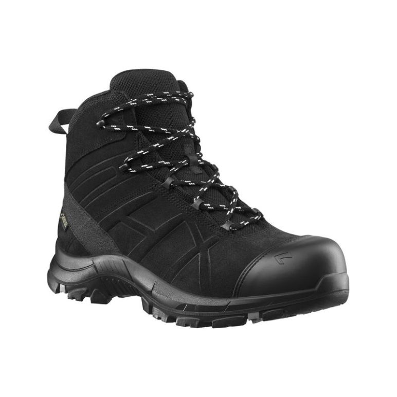 HAIX Sicherheitsstiefel S3 HRO HI CI WR SRC in Schwarz BLACK EAGLE Safety 53 mid Die Sicherheitsschuhe von Haix begeistern mit vielen Funktionen. Das Obermaterial besteht aus Veloursleder, welches mit hervorragender Abriebfestigkeit glänzen kann. Im Inneren der Schuhe verbirgt sich eine GORE-TEX® Extended-Membrane. Diese ist wasserdicht und hoch atmungsaktiv. Das Fußbett der Schuhe ist eine herausnehmbare Einlegesohle mit belüfteten AIRFLOW-Kanälen. Die Laufsohle der Sicherheitshalbschuhe besteht aus einem hoch abriebfestem und rutschhemmenden Gummi/PU. Durch einen PU-Dämpfungskeil in der Ferse werden Rücken und Gelenke besonders bei Arbeiten auf harten Untergründen geschont. Außerdem besteht die ultraleichte Zehenschutzkappe aus einem metallfreiem faserverstärktem Kunststoff, wodurch Sie keine Probleme bei Sicherheitskontrollen haben. Auch für sensible Umgebungen ist der Schuh dank der ESD-Eignung zugelassen. Dieser Schuh ermöglicht Ihnen eine gute Haftung auf unterschiedlichen Böden, wie z.B. auf glatten Keramik- und Metallböden. Besonderheiten: Normen: A, CI, DGUV 112-191, E, EN ISO 20345:2011, DIN EN 61340-4-3:2002,  HI, HRO, ORO, FO, SRC, WR Sicherheitsklasse: S3 Obermaterial: Veloursleder, hydrophobiert, atmungsaktiv (5,0 mg/cm²/h), 1,9 – 2,1 mm dick Innenfutter: GORE-TEX® Wasserdicht ESD-Eignung Hitzebeständig Kältebeständig Metallfrei Klassische Schnürung Öl- und benzinbeständig Abriebfest und rutschhemmend Sehr gute Haftung auf untersch. Terrain Einsatzgebiete: Arbeitsschutz, Bauhandwerk, Forst, Handwerk, Industrie, Outdoor Saison: Frühling, Herbst, Sommer, Winter Höhe: 14,5 cm Farbe: Schwarz Größen: 35-51