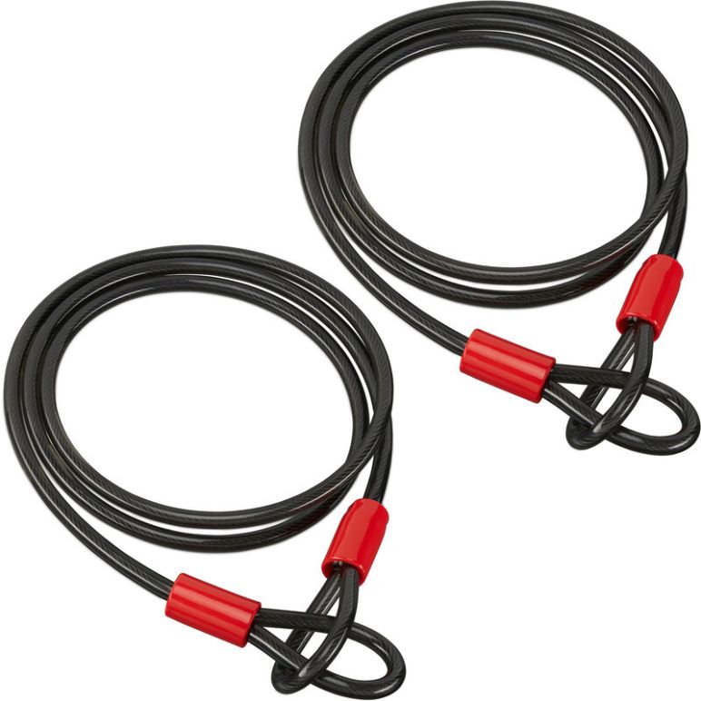 2 x Schlaufenkabel 2m, für Fahrrad & Gepäck, ummanteltes Stahlkabel mit Schlaufen, langes Fahrradschloss, schwarz