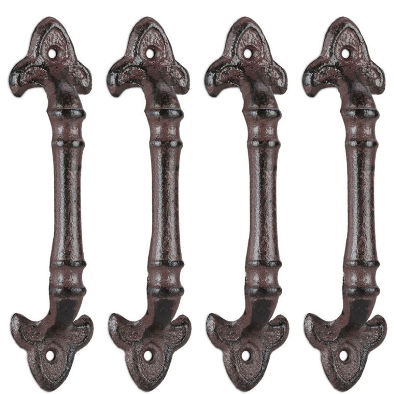 4 x Möbelgriff Vintage, Türgriffe antik für Schränke, Schubladen, Schiebetüren, Gusseisen, Schrankgriffe, 20 cm, braun