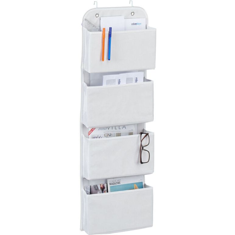 Hängeorganizer, 4 Fächer, Tür Organizer mit Haken zum Einhängen, Vlies Hängeaufbewahrung Bad & Büro, weiß - Relaxdays