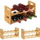 3 x Weinregal, platzsparende Weinablage für je 8 Flaschen, quer, Flaschenregal aus Bambus, HBT 24 x 47 x 18 cm, natur