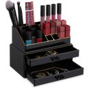 Make Up Organizer klein, 2-teilige Schminkaufbewahrung mit Schubladen, stapelbares Kosmetikregal, schwarz/gold - Relaxdays