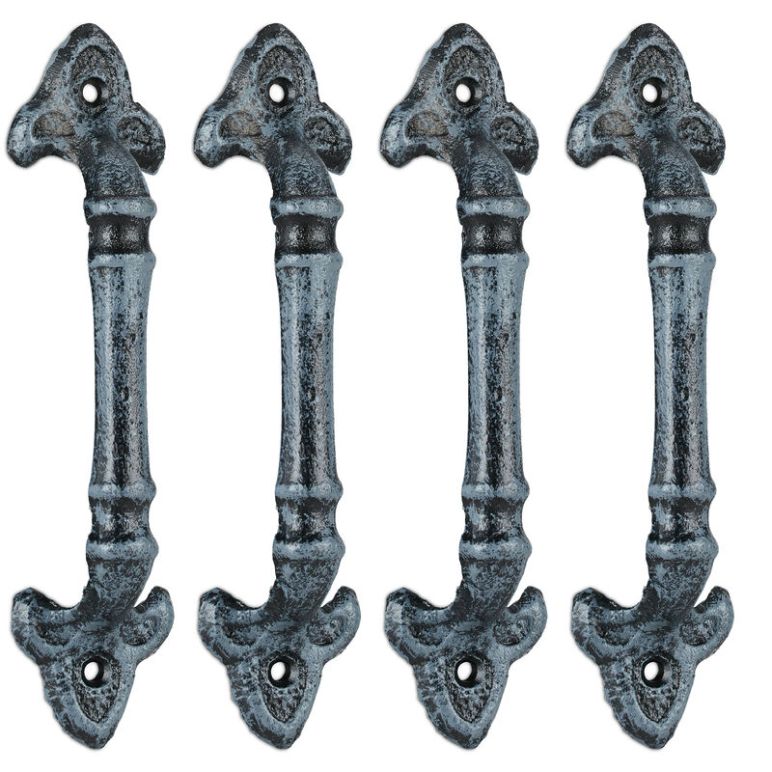 4 x Möbelgriff Vintage, Türgriffe antik für Schränke, Schubladen, Schiebetüren, Gusseisen, Schrankgriffe, 20 cm, grau