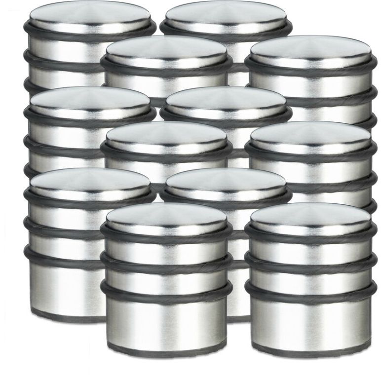 12x Türstopper, Türfeststeller, Türpuffer, Edelstahl, hoch, schwere Türen, Gummischutz, H x D: 7,5 x 7 cm, silber