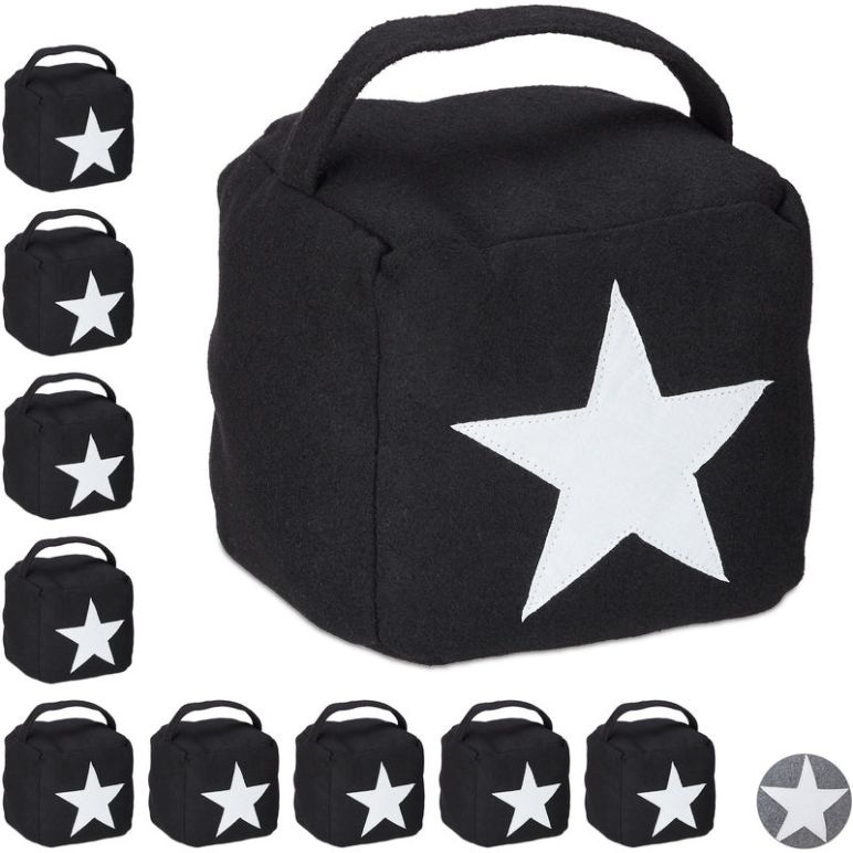 10 x Türstopper Stern, Türpuffer Stoff, Türsack Boden, hoch, mit Griff, dekorativ, HxBxT: 20 x 15 x 15 cm, schwarz