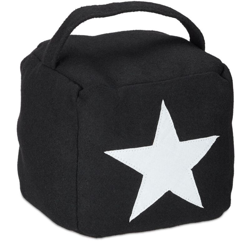 Türstopper Stern, Türpuffer Stoff, Türsack Boden, hoch, mit Griff, dekorativ, HxBxT: 20 x 15 x 15 cm, schwarz - Relaxdays