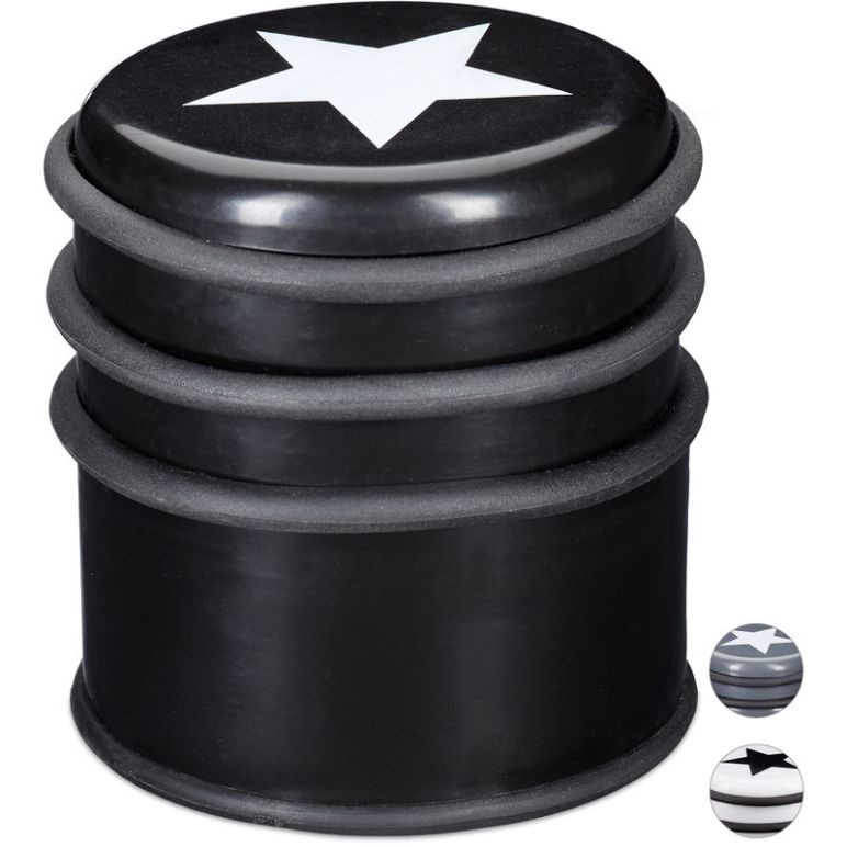 Türstopper für den Boden, Türpuffer für Fenster & schwere Türen, Türhalter mit Stern-Motiv, 8 cm hoch, schwarz - Relaxdays