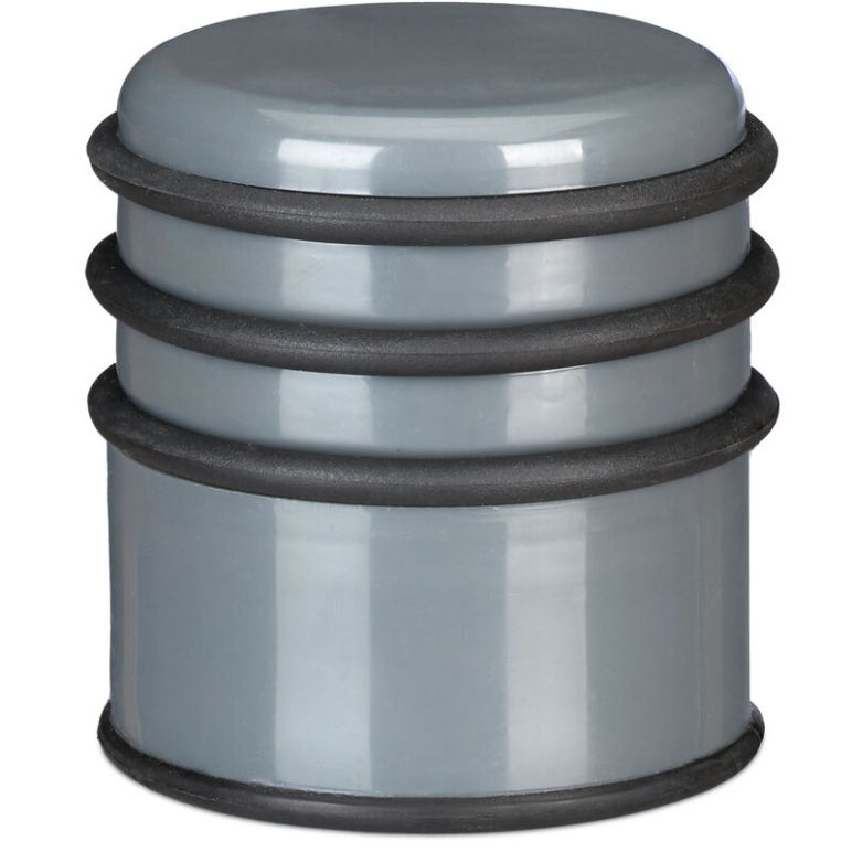 Türstopper für den Boden, schwerer Türpuffer, für Türen & Fenster bei Luftzug, ∅ 7cm, 3 Gummiringe, dunkelgrau - Relaxdays