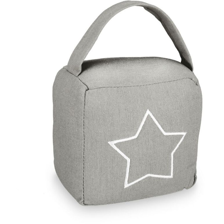 Dieser schöne Bodentürstopper ist ideal, um unbeabsichtigtes Anschlagen oder Zuknallen der Türen bei Ihnen zu Hause zu verhindern. Durch die Füllung aus Sand steht er stabil und sicher auf dem Boden. Dank seiner Höhe ist der Türsack auch für höher gelegene Türen, wie die Balkon- sowie Terrassentüren, oder Fenster verwendbar. Der quadratische Türstopper aus Stoff überzeugt durch sein modernes Design mit einem dekorativen Stern auf der Vorderseite. Der Türpuffer muss nicht am Boden oder der Wand befestigt werden und kann durch den praktischen Griff einfach angehoben und jederzeit flexibel neu platziert werden. Türstopper Sack im Detail - Maße H x B x T: ca. 18,5 x 14 x 10 cm - Höhe ohne Griff: ca. 12,5 cm - Griff B x T: ca. 3 x 18 cm - Gewicht: ca. 1 kg - Material: Polyester, Sand - In verschiedenen Farben erhältlich Dekorativer Türpuffer für den Boden - Modernes Design mit dekorativem Stern-Motiv - Weicher Stoff ist schonend zu Tür und Boden - Durch Griff einfach anheben und flexibel