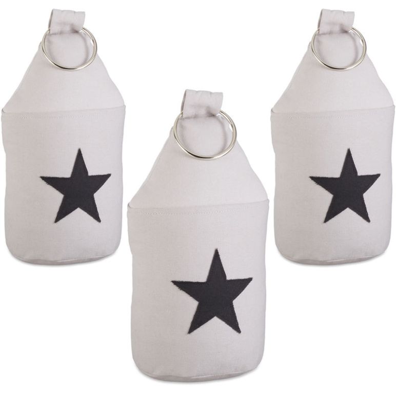3er Set Türstopper Stern, Türpuffer Stoff, Türsack Boden, extra hoch, mit Griff, dekorativ, HxD: 23 x 11 cm, grau