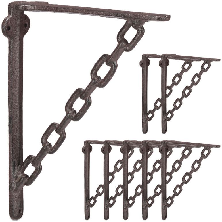 Relaxdays - 8 x Regalwinkel Gusseisen, Antik-Stil, Regalträger, ausgefallenes Ketten-Motiv, Wandhalter für Regalboden, rostbraun