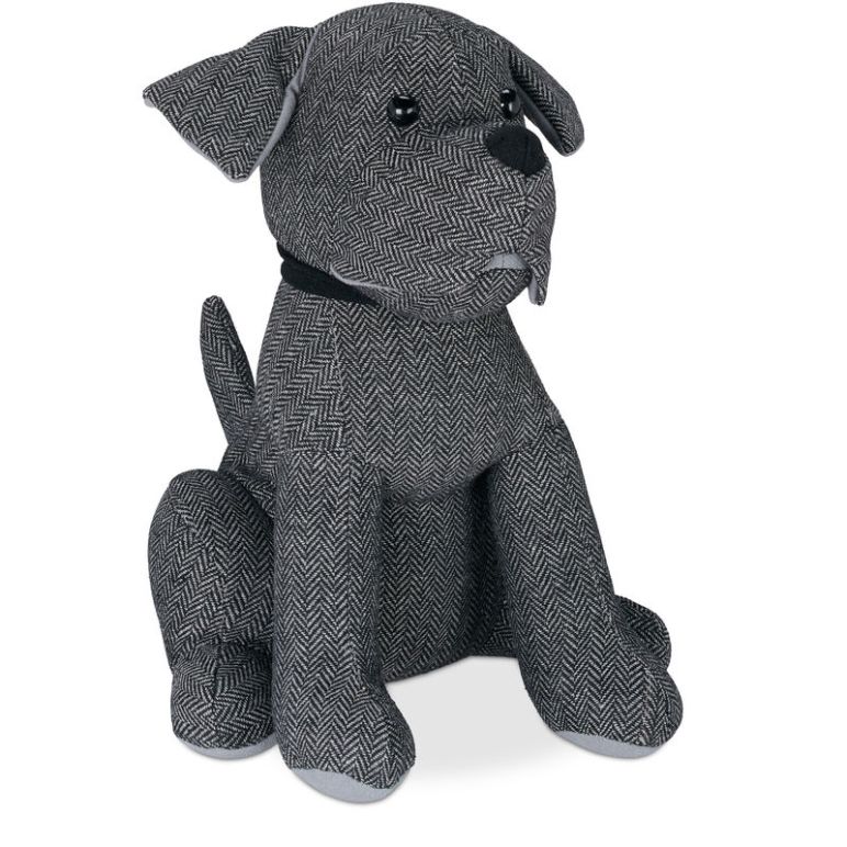 Türstopper Hund, dekorativer Türpuffer, für Boden, stehend, gefüllt, innen, 33 cm hoch, Stoff Türsack, grau - Relaxdays