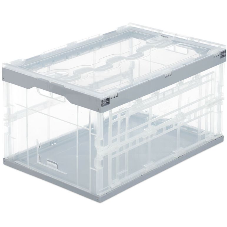 relaxdays Klappbox 60,0 l transparent/grau 59,5 x 39,5 x 31,5 cm
