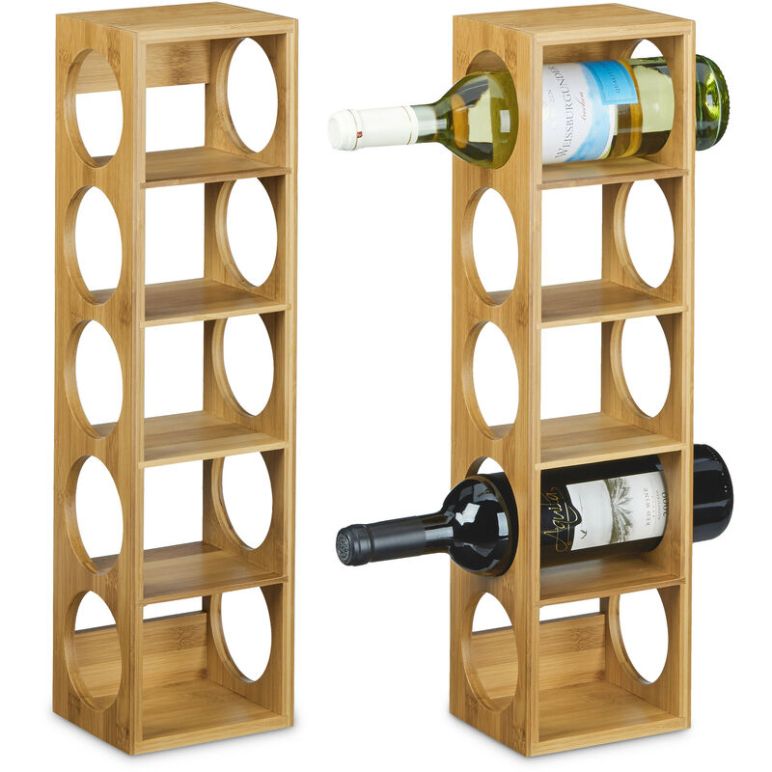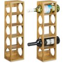 2x Weinregal Bambus, Flaschenhalter 5 Fächer, Holzregal für Wein, Flaschenregal modern, HxBxT: 53 x 14 x 12 cm, natur