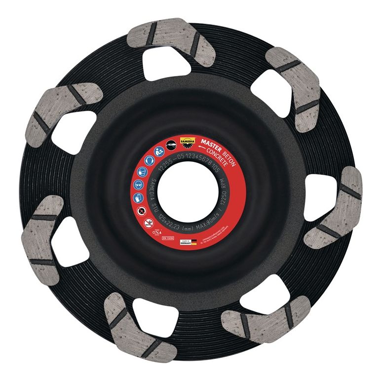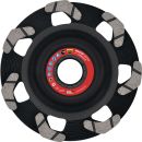 Premium-Diamantschleifteller mit präzisionsgeschweißten Bumerang-Segmenten · Unwucht ausnivelliert · vibrationsarmes Arbeiten · besonders leicht schleifend · einsetzbar bei Beton, Granit, Fliesenkleber zementär, Estrich, Kleberesten und Teppichresten