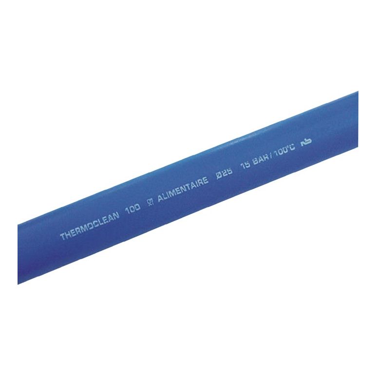 Schlauch der neuen Generation · Material: Weich-PVC-Schlauch mit Polyesterfadeneinlage, hellblau gedeckt mit spiegelglatter weißer Seele · Temperaturbereich: -15 °C bis +100 °C · zugelassen für den Kontakt mit Lebensmitteln nach der europäischen Richtlinie 2007/19 CE in den Kategorien A/B/C (VO 10/2011-konform)Der antimikrobielle THERMOCLEAN® 100 ANTIMICROBIAL behält seine Temperatureigenschaften und verhindert das Wachstum von Bakterien, wodurch das Auftreten von Schimmelpilzen und anderen Pilzen gehemmt wird.Einsatzbereich: in der Lebensmittelindustrie, für Schlachthäuser, Großküchen usw. · Anwendung: Reinigung und Förderung von Lebensmitteln bis zu +100 °CWeitere technische Eigenschaften:· Aggregatzustand: Flüssig / Gasförmig· Betriebsdruck: 30bar