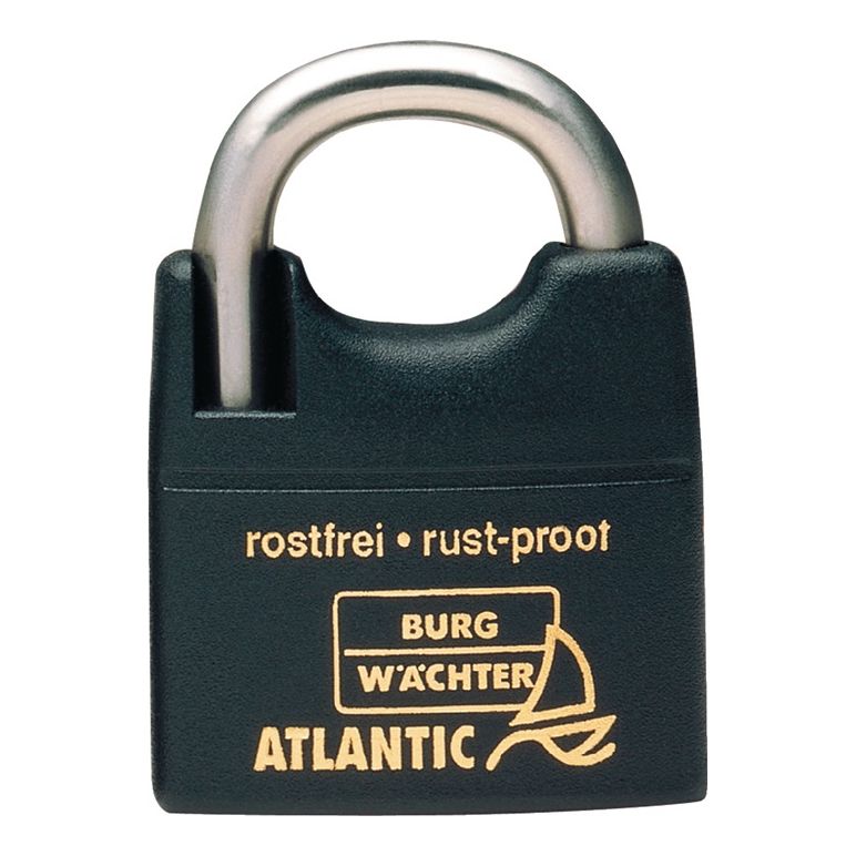 seewasserfest, absolut rostfrei · massiver Messingkörper · Kunststoffmantel schützt empfindliche Oberflächen · Edelstahlbügel, doppelt verriegelt · Innenwerk rostfrei · gleichschließend lieferbar auf Anfrage