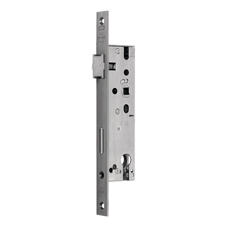 für einflügelige Türen · Stulp Oberfläche Edelstahl matt · zugelassen nach DIN 18251-2 Klasse 3 und EN 12209 für Feuerschutztüren · Falle aus Feinguss und Riegel aus Zink-Druckguss · 20 mm Riegelausschluss, 1-tourig · PZ · Entfernung 92 mm · 9 mm Vierkant · mit WechselWeitere technische Eigenschaften:· Stulpbreite: 24mm· Lochung: PZ