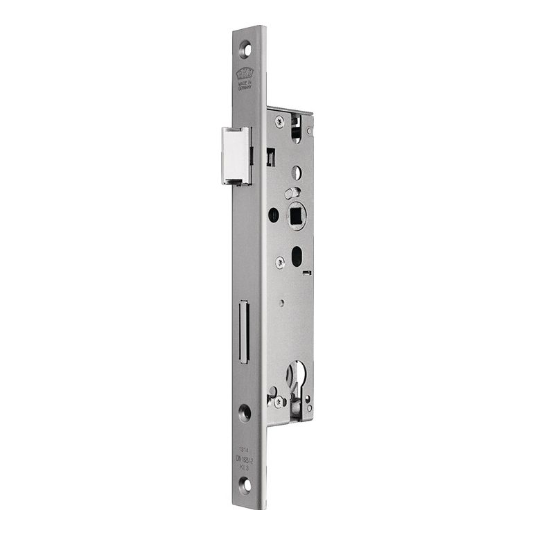 Wechselfunktion E · für einflügelige Türen · Feuerschutz · zugelassen nach DIN 18251-2 Klasse 3 und EN 12209 für Feuerschutztüren, EN 179 (Notausgänge) und EN 1125 (Paniktüren) · Falle aus Feinguss und Riegel aus Zink-Druckguss, 20 mm Riegelausschluss · 1-tourig · Entfernung 92 mm · mit durchgehender Nuss · 9 mm Vierkant · mit WechselWeitere technische Eigenschaften:· Hinterdornmaß: 15mm· Schlosskasten: oben und unten geschlossen· Schlossriegel: 1-tourig· Riegelausschluss: 20mm