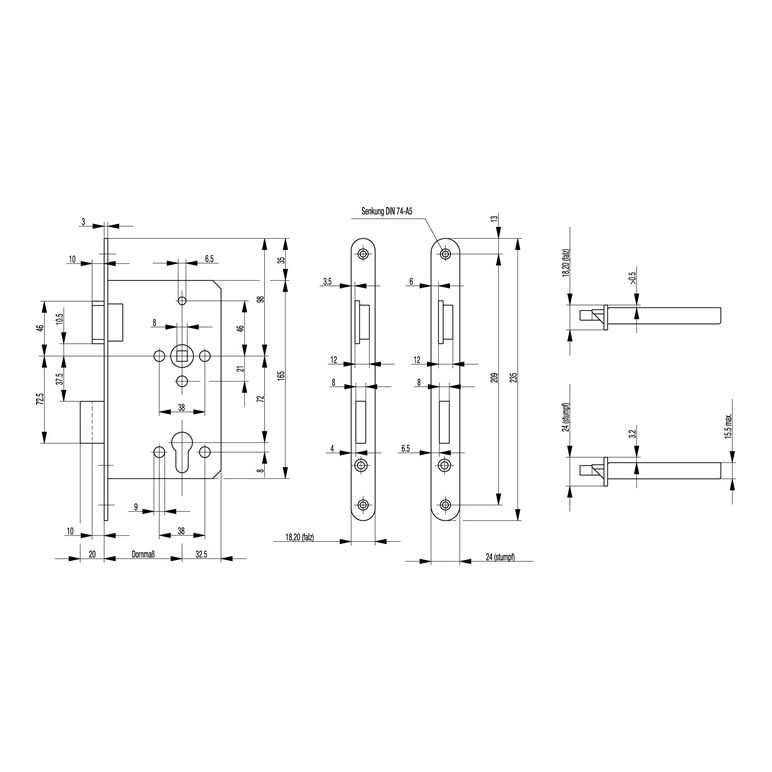 PZW Ausführung · nach DIN 18251-1 Klasse 3 · allseitig geschlossener Schlosskasten · 2-tourig · mit Wechsel · Stulplänge 235 mm · Entfernung 72 mm · Vierkant 8 mm · Falle und Riegel aus Zinkdruckguss · ohne SchließblechWeitere technische Eigenschaften:· Schlosskasten: allseitig geschlossen· passend für: Zimmertüren