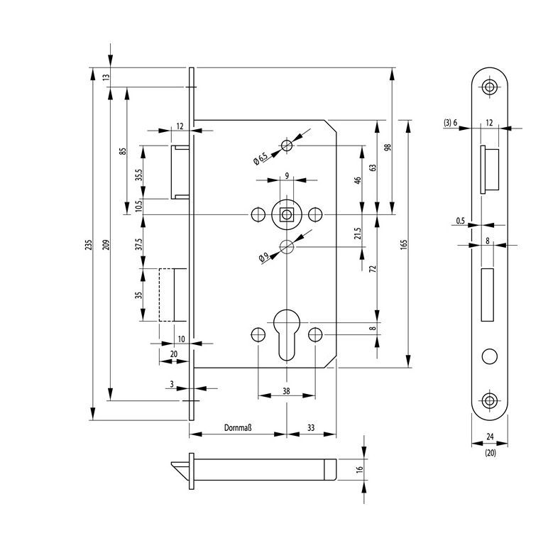 Panik-Durchgangsfunktion D · für auswärts öffnende einflügelige Holz- oder Stahltüren · in Kombination mit geprüften Beschlägen nach EN 179 (Notausgänge) und nach EN 1125 (Paniktüren) zugelassen · Feuerschutzeignung nach DIN 18250 + DIN 4102 + DIN EN 1634 · zweitourig · 2-teilige Nuss · vorgerichtet für Profilzylinder · Falle und Riegel aus Stahl · Entfernung 72 mm · Vierkant 9 mm · Stulplänge 235 mm · allseitig geschlossener SchlosskastenWeitere technische Eigenschaften:· Riegel: Stahl· Norm: DIN 18250· Schlosskasten: allseitig geschlossen· Riegelausschluss: 20mm· Falle: Stahl