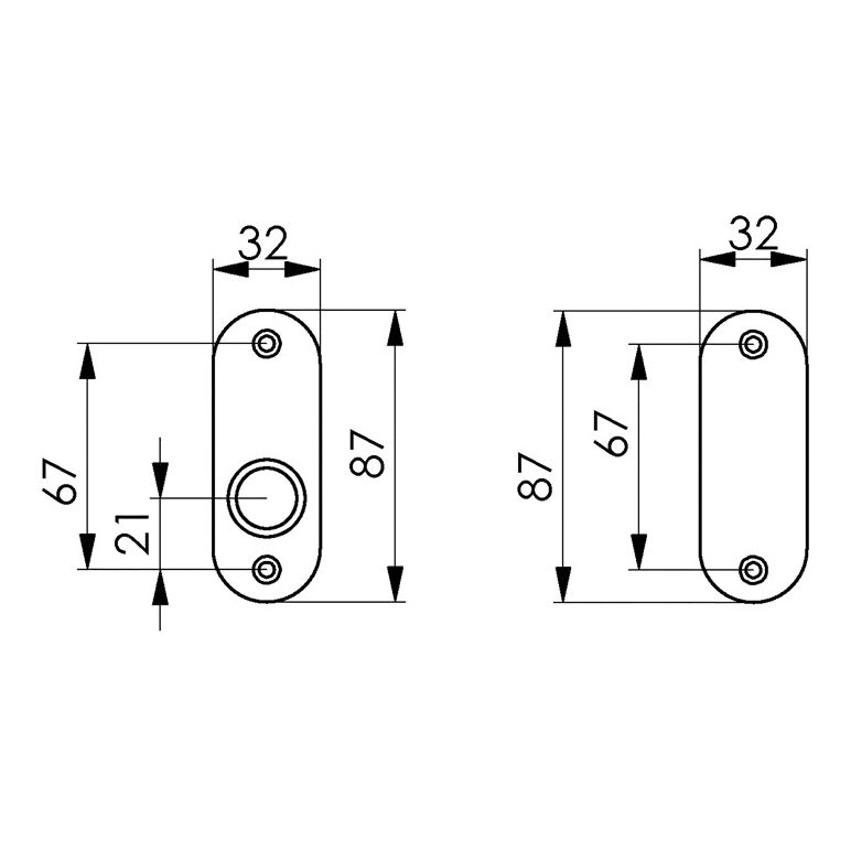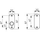 oval · passend für Schlosskästen · Führung 18 mm · Schraublochabstand 67 mm · Stärke 7 mm · Höhe 87 mm · Breite 32 mm · sichtbare Verschraubung · Lochung rund · Lieferung mit zwei EdelstahlschraubenWeitere technische Eigenschaften:· Farb-Nr.: F1