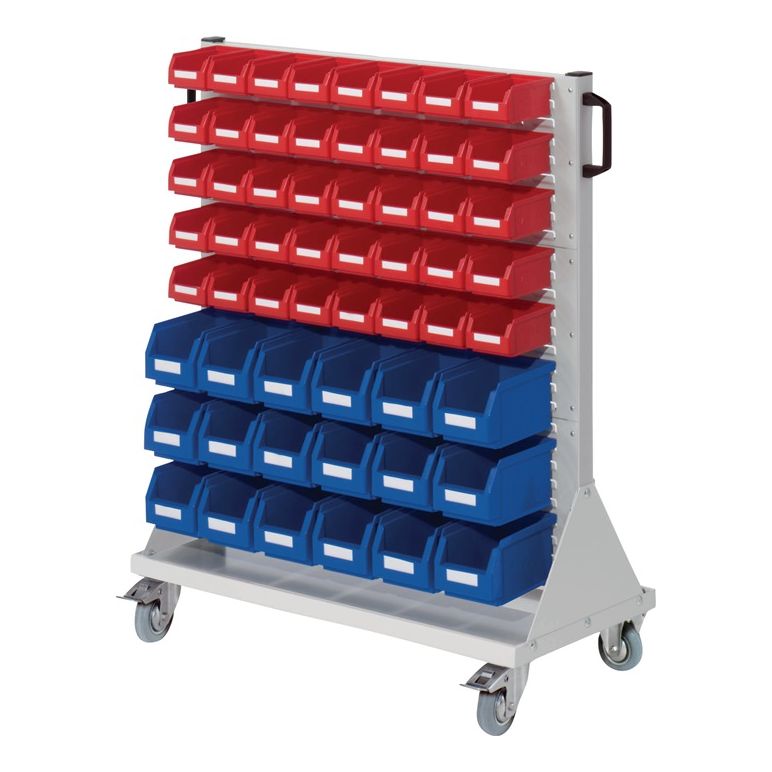 Rollwagen RasterMobil H1230xB1000xT500mm KastenxGr.18 x Gr.6 blau/40 x Gr.7 rot