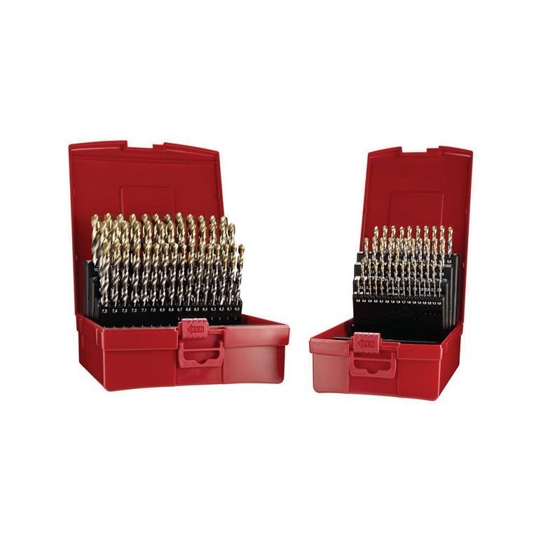 Bohrerset in STANDARD-Plastikbox bestehend aus 91 spiralbohrer Bohrer mit Zylinderschaft · A002 Durchmesser 1.0 bis 10.0mm mit Größensteigung von 0.1mm · gemäß DIN 338 Standard mit 118° modifizierter Kreuzanschliff · HSS mit TiN-Spitzen-Beschichtung für 4xD Bohrungen ohne Zentrierung in StahlWeitere technische Eigenschaften:· Modell: A095 · 209