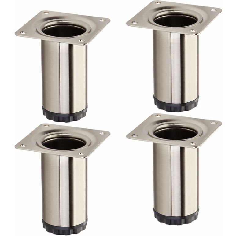 4er Pack - Möbelfuß bravo Höhe 80 mm (+ 10 mm) ø 40 mm Edelstahloptik höhenverstellbares Schrankbein aus Stahl Stützfuß belastbar bis 50 kg von