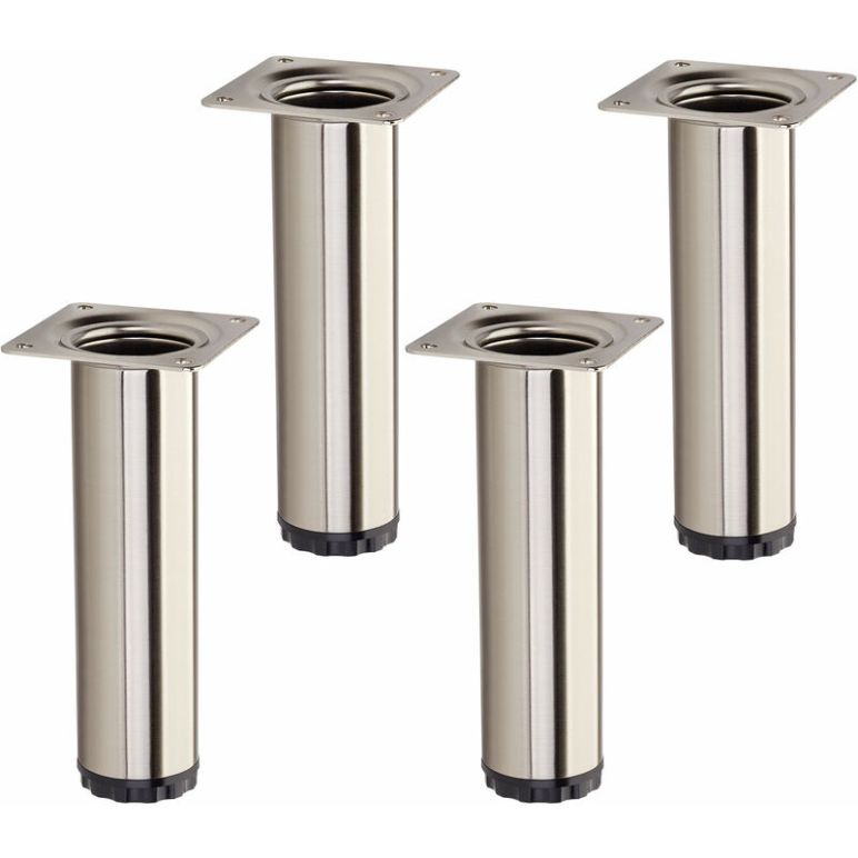 4er Pack - Möbelfuß bravo Höhe 150 mm (+ 10 mm) ø 40 mm Edelstahloptik höhenverstellbares Schrankbein aus Stahl Stützfuß belastbar bis 50 kg von