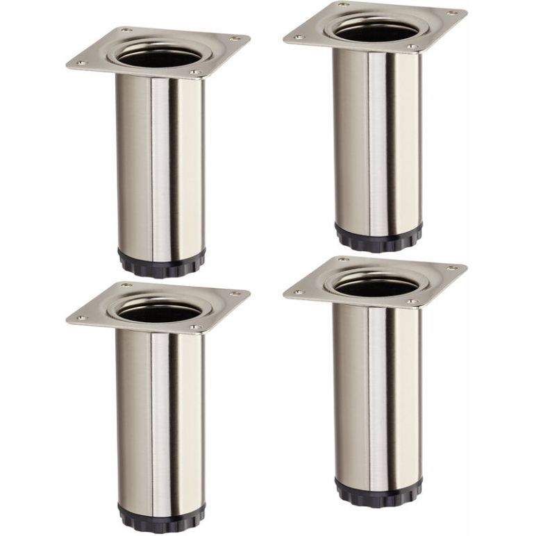 4er Pack - Möbelfuß bravo Höhe 100 mm (+ 10 mm) ø 40 mm Edelstahloptik höhenverstellbarer Schrankfuß aus Stahl Stützfuß belastbar bis 50 kg von