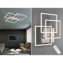Lichtobjekte in geometrischen Formen, ein Statement an Wand oder Decke! Die schwenkbaren Module der MOBILE lassen keinen Gestaltungswunsch offen und bieten kreative Anordnungsmöglichkeiten. Über eine Fernbedienung kann nicht nur die Helligkeit nach Belieben gedimmt, sondern auch die Farbtemperatur von warmweiß bis kaltweiß (2700-6000 Kelvin) gesteuert werden. Zusätzlich verfügt die eckige Leuchte über ein Nachtlicht, das je Bedarf ebenfalls über die Fernbedienung gesteuert werden kann. Geradlinig und unaufdringlich in formvollendeter Optik passt sich die coole LED Deckenlampe mit einer Größe von 42cm x 39cm, sowie eine Höhe von 10cm vielen Einrichtungsstilen an. Im modernen Silber matt bietet die Leuchte durch ihre Schlichtheit zahlreiche Anwendungsmöglichkeiten, und ist zur Wand- und Deckenmontage geeignet. Vielleicht haben Sie Geschäftsräume, einen Flur oder Dielenbereich, den Sie mit einer effektiven Deckenleuchte modern gestalten möchten? Oder Sie sind auf der Suche nach einer