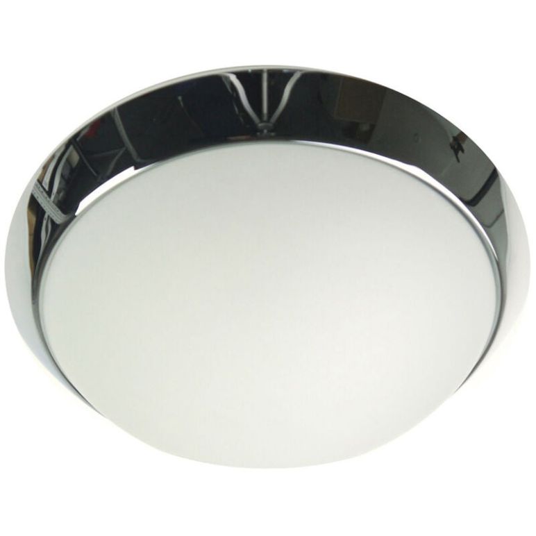 Klassische LED Deckenleuchte in einer harmonischen Kombination aus mattem Opalglas und einem Zierring in Chrom punktet mit schlichter Eleganz und macht in jedem Eingangsbereich eine gute Figur! Die geschlossene LED Leuchte passt sich jeder Umgebung an und schenkt durch ihr mattes Opalglas schönes Licht und sorgt für eine angenehme Lichtverteilung. So strahlend wie das Licht der LED Dielenlampe, so vielfältig lässt sich diese schöne LED Flurleuchte auch in Ihre Umgebung einbinden. Mit einem Durchmesser von 45cm und einer Höhe von 13cm eignet sich die Glasleuchte optimal für die Beleuchtung von Fluren, Dielen und Kellern. Die Deckenleuchte leistet jedoch auch in Treppenhäusern, Garagen und Aufgängen zuverlässige Dienste. Diese weiße Leuchte ist ebenso hervorragend geeignet für den Einsatz in Aufenthaltsräumen, Empfangshallen oder Sanitärbereichen. Die Deckenbefestigung der Treppenhausleuchte besteht aus weißem Metall, das Leuchtenglas wird durch Bajonett-Verschluss befestigt und