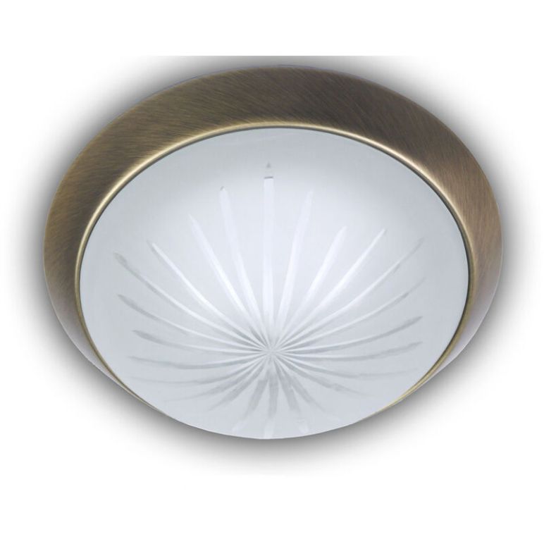 Klassische LED Deckenleuchte in einer harmonischen Kombination aus satiniertem Schliffglas und einem Zierring in ALtmessing punktet mit schlichter Eleganz und macht in jedem Eingangsbereich eine gute Figur! Die geschlossene LED Leuchte aus satiniertem Schliffglas passt sich jeder Umgebung an, schenkt dabei ein schönes und blendfreies Licht, und sorgt stets für die richtige Beleuchtung. So strahlend wie das Licht der LED Dielenlampe, so vielfältig lässt sich diese schöne LED Flurleuchte auch in ihre Umgebung einbinden. Mit einem Durchmesser von 35cm und einer Höhe von 12cm eignet sich die Glasleuchte optimal für die Beleuchtung von Fluren, Dielen und Kellern. Die Decken Leuchte leistet jedoch auch in Treppenhäusern, Garagen und Aufgängen zuverlässige Dienste. Diese weiße Leuchte ist ebenso hervorragend geeignet für den Einsatz in Aufenthaltsräumen, Empfangshallen oder Sanitärbereichen. Auch in Hotels und Gastronomiebereichen passt sich diese runde LED Deckenleuchte unaufdringlich ein.