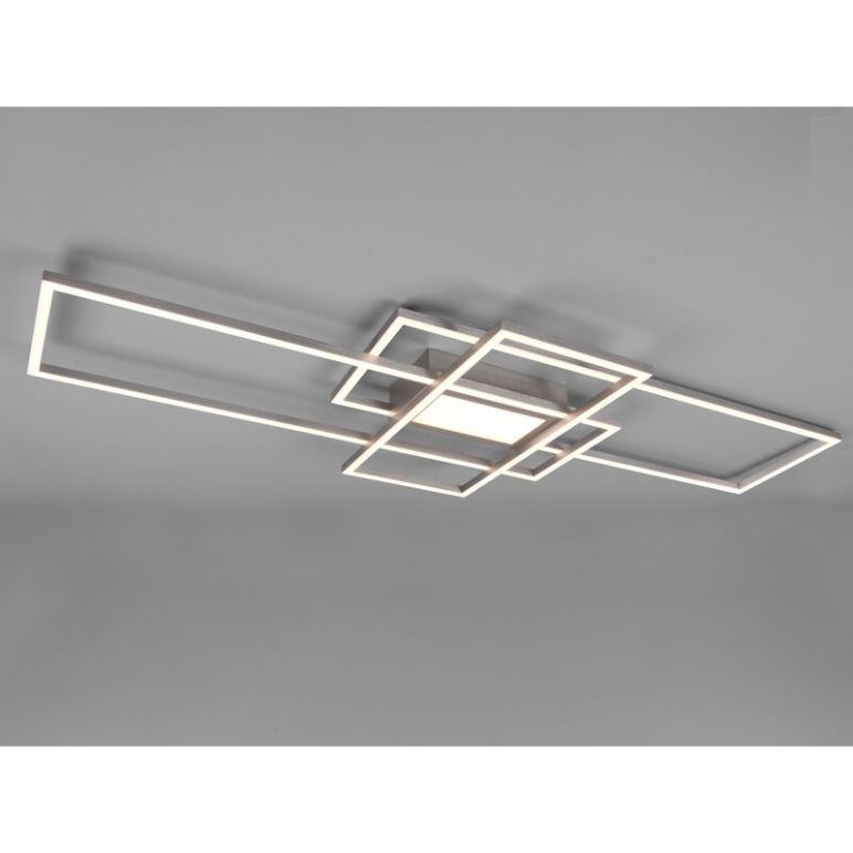 Puristische LED Deckenleuchte CANTA mit 3 Stufen Dimmer aus dem Hause MeineWunschleuchte Die Deckenleuchte verfügt über ein dezentes und minimalistisches Design, das sich vielseitig einsetzten lässt. Die Zusammensetzung aus drei einzelnen, filigranen Rechtecken ergibt eine moderne Leuchte für den Wohnraum oder Eingangsbereich. In Silber Nickel matt designt, lässt sich die Leuchte vor allem in moderne und gradlinige Einrichtungsstile integrieren und lässt darüber hinaus viel Spielraum bei der Kombination mit vorhandenem Interieur und Farben. Durch das puristische Design findet die Deckenleuchte in nahezu allen Räumlichkeiten ihren Platz und sorgt für ein stimmungsvolles Ambiente. Darüber hinaus verfügt die geometrische Leuchte über eine moderne LED Technologie, mit einem fest verbauten LED Leuchtmittel mit 56 Watt und einer Lichtstärke von 6500 Lumen sorgt sie für eine warmweiße Beleuchtung. Zusätzlich ist die große Deckenlampe mit einem Dimmer ausgestattet, der über den Wandschalter