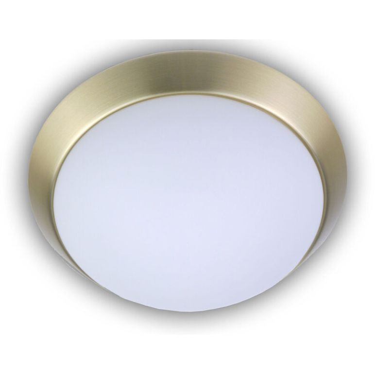Klassische LED Deckenleuchte in einer harmonischen Kombination aus mattem Opalglas und einem Zierring in Messing matt punktet mit schlichter Eleganz und macht in jedem Eingangsbereich eine gute Figur! Die geschlossene LED Leuchte passt sich jeder Umgebung an, und schenkt durch ihr mattes Opalglas schönes Licht und sorgt für eine angenehme Lichtverteilung. So strahlend wie das Licht der LED Dielenlampe, so vielfältig lässt sich diese schöne LED Flurleuchte auch in ihre Umgebung einbinden. Mit einem Durchmesser von 45cm und einer Höhe von 13cm eignet sich die Glasleuchte optimal für die Beleuchtung von Fluren, Dielen und Kellern. Die Decken Leuchte leistet jedoch auch in Treppenhäusern, Garagen und Aufgängen zuverlässige Dienste. Diese weiße Leuchte ist ist ebenso hervorragend geeignet für den Einsatz in Aufenthaltsräumen, Empfangshallen oder Sanitärbereichen. Durch das enthaltene, festverbaute LED Leuchtmittel können Sie diese Deckenleuchte über Ihre Hausinstallation dimmen. Die