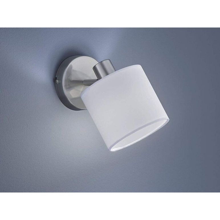 Led Wandstrahler 1 flammig in Silber matt mit Stoffschirm in Weiß Ø12cm