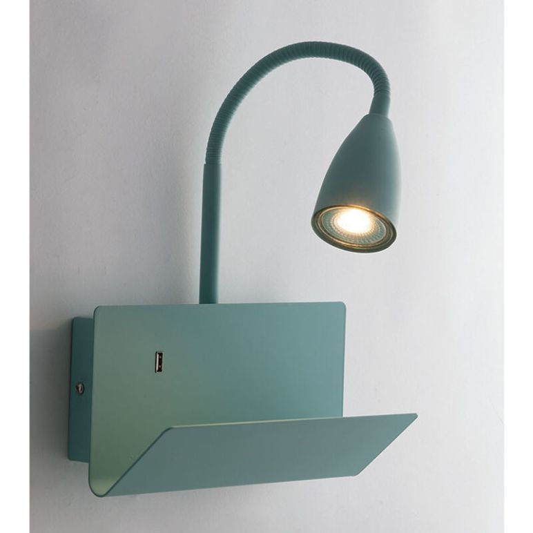 Flexible usb led Leselampe Grün, Wandleuchte mit Ablage & Ladefunktion