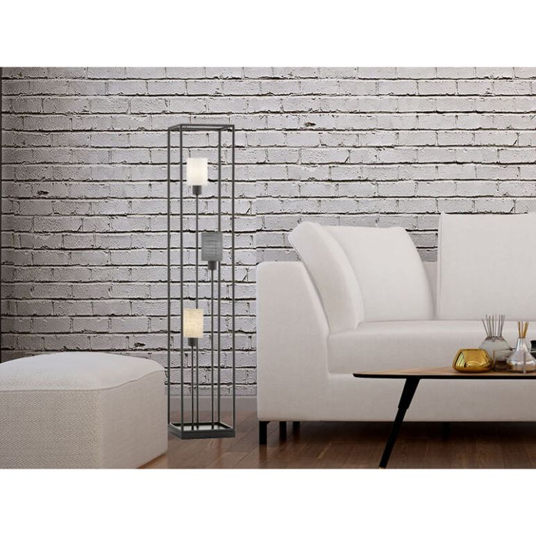 Lichtdesign in seiner schönsten Form verspricht diese angesagte, 3flammige Stehlampe: Unkonventionell, kreativ und designorientiert! Minimalistische Leuchten wie diese Stehlampe setzen spannende Akzente und rücken Räume ins rechte Licht. Die Auswahl der Farben und Formen schafft Kontraste - geschickt kombiniert entstehen eine gemütliche Komponente und ein stilvolles Ambiente. Die Designstehleuchte setzt sich aus drei zylinderförmigen Leinenstoffschirmen in Sandfarben, Weiß und Grau mit einem Durchmesser von jeweils 8,5 cm und einem 120 cm hohen, sandschwarzen Metallrahmen zusammen. Der moderne Look wird durch den angesagten Farb- und Materialmix perfekt abgerundet und sorgt für ein tolles Erscheinungsbild. So sorgt die Stehleuchte als zusätzliche Lichtquelle neben der Grundbeleuchtung für ein sanftes, atmosphärisches Licht und für effektvolle Highlights in Ihrem Wohnraum. Die außergewöhnliche Designerlampe mit bequem zu bedienendem Fußschalter für Ein/Aus leistet daher nicht nur als