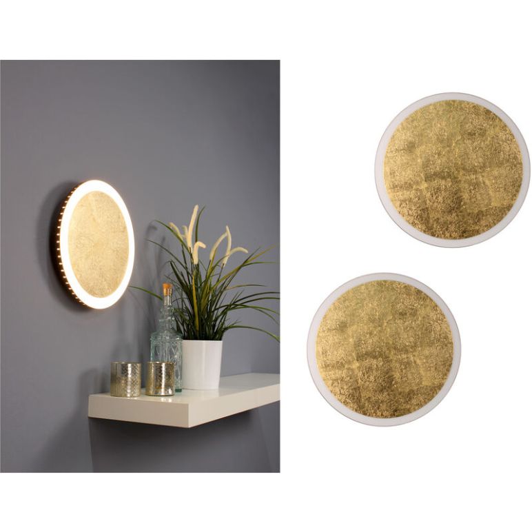 Runde LED Innenlampen - 2er Set für Wand & Decke, Spiegel Design Blattgold 30cm