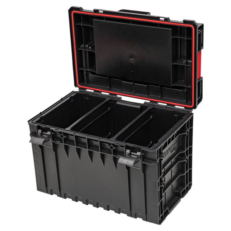 Der Rhino XXL Werkzeugkoffer (Höhe XL) in der Handling+ Variante ist Werkzeugkoffer und Organizer in einem. Er hat ein großes Fach für Werkzeuge und Zubehör sowie ein kleines direkt zugängliches Fach für Kleinteile im Deckel. Damit ist er optimal, um ein komplettes Set in einem Koffer zu lagern und Zubehör, was häufig genutzt wird, wie beispielsweise Schrauben. Du bekommst in der Höhe XL ein extrem großes Hauptfach mit 2 Trennwänden und 8 weitere Behälter im Deckel. Sie sind alle individuell einsetzbar und bieten damit Platz für verschiedenste Werkzeuge, für jeden Einsatz neu anpassbar. Thema Kompatibilität: Der XXL Werkzeugkoffer ist mit den kompletten Rhino Sortiment kompatibel (direkt koppelbar oder mit Multi-Adapterplatte). So kannst du ihn mit weiteren Werkzeugkoffern und Organizern kombinieren oder mit dem XXL Cart direkt zur mobilen Werkstatt auf Rädern aufrüsten. Und durch die M8 Gewindeschrauben kannst Du außerdem auch noch eigene Kreationen an deinen Rhino anbringen - der Freiheit sind hier keine Grenzen gesetzt. Die Rhino XXL Reihe ist aus recyceltem Kunststoff hergestellt, der sich durch außergewöhnliche Beständigkeit gegen mechanische Beschädigungen auszeichnet, auch bei niedrigen Temperaturen von unter 0° - ausgelegt für jede Witterung. Gegen Staub und Wasser ist der Rhino nach IP66 Schutzklasse vollständig geschützt.