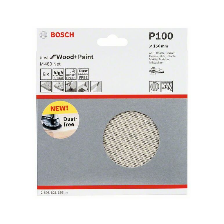 Bosch Schleifblatt M480 Net, Best for Wood and Paint, 150 mm, 100, 5er-Pack (2 608 621 163)