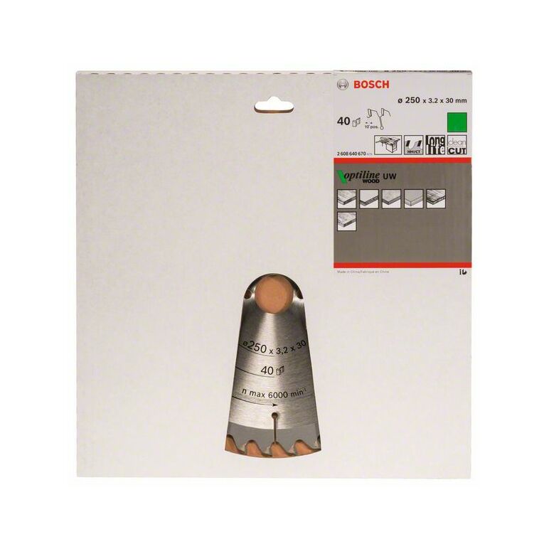 Bosch Kreissägeblatt Optiline Wood für Tischkreissägen, 250 x 30 x 3,2 mm, 40 (2 608 640 670)
