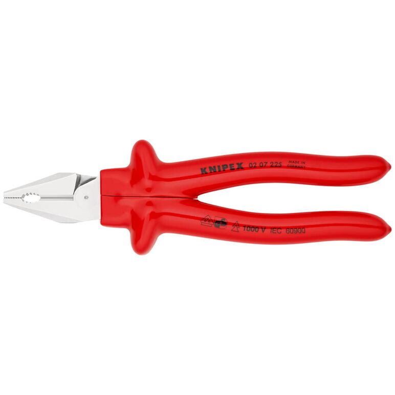 35 % Kraftersparnis gegenüber herkömmlichen Kombizangen. Mit Schneiden (Härte ca. 63 HRC) für den harten Einsatz. Leichteres Arbeiten durch optimierte Übersetzung. Leichter schneiden, kraftvoll greifen, biegen und ziehen. Lange Schneiden für dickere Kabel. Mit Greifzonen für Flach- und Rundmaterial für vielseitigen Einsatz. Schneiden zusätzlich induktiv gehärtet, Schneidenhärte ca. 63 HRC.