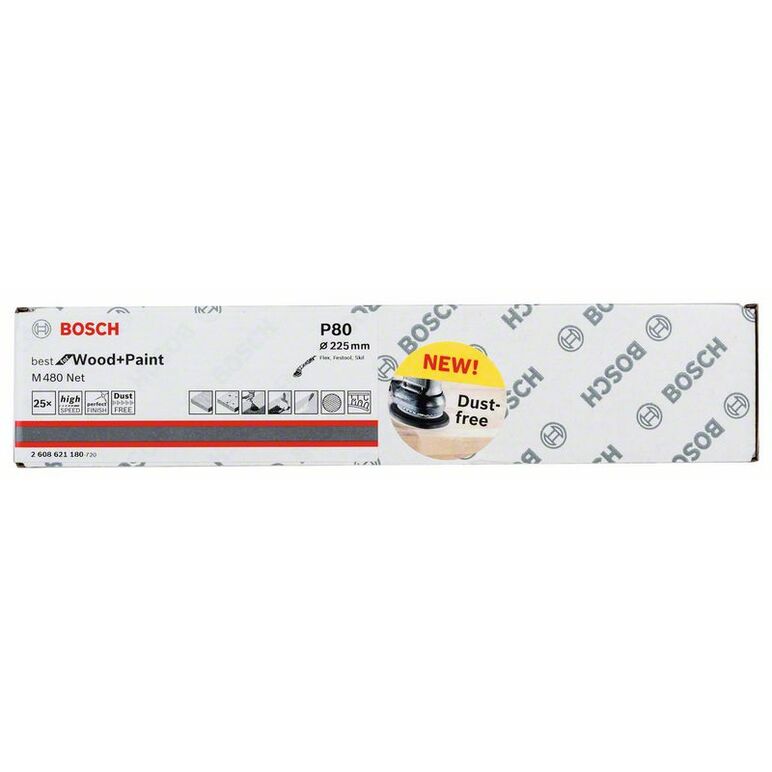 Bosch Schleifblatt M480 Net, Best for Wood and Paint, 225 mm, 80, 25er-Pack (2 608 621 180)