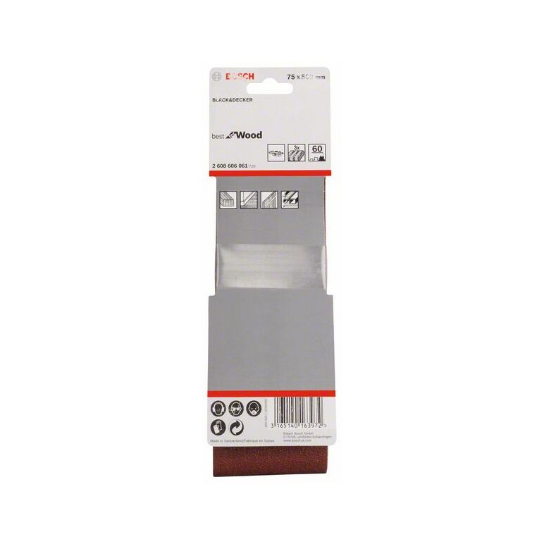 Bosch Schleifband-Set X440 Best for Wood and Paint, 3-teilig, 75 x 508 mm, 60 (2 608 606 061)