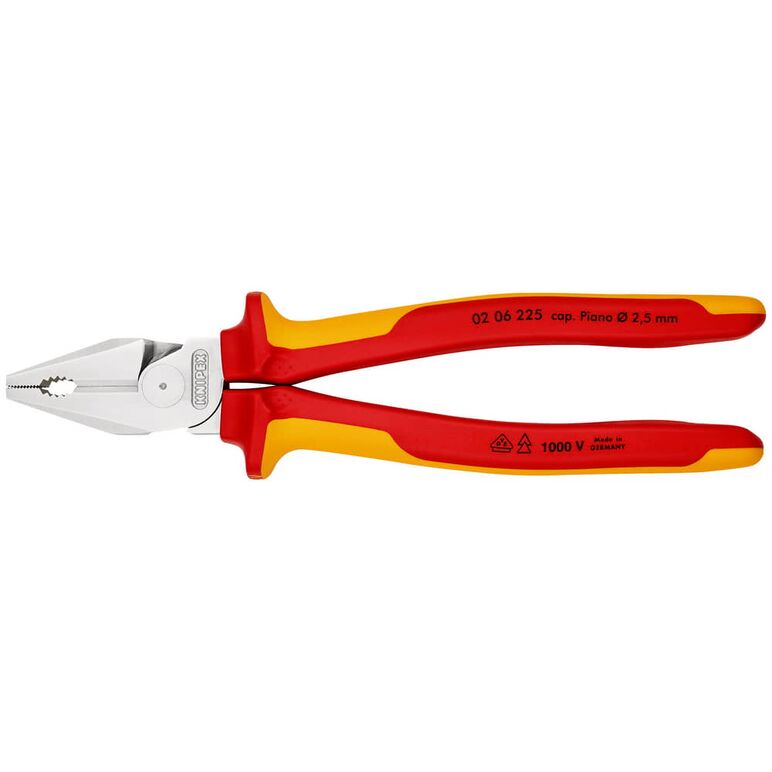 35 % Kraftersparnis gegenüber herkömmlichen Kombizangen. Mit Schneiden (Härte ca. 63 HRC) für den harten Einsatz. Leichteres Arbeiten durch optimierte Übersetzung. Leichter schneiden, kraftvoll greifen, biegen und ziehen. Lange Schneiden für dickere Kabel. Mit Greifzonen für Flach- und Rundmaterial für vielseitigen Einsatz. Schneiden zusätzlich induktiv gehärtet, Schneidenhärte ca. 63 HRC.